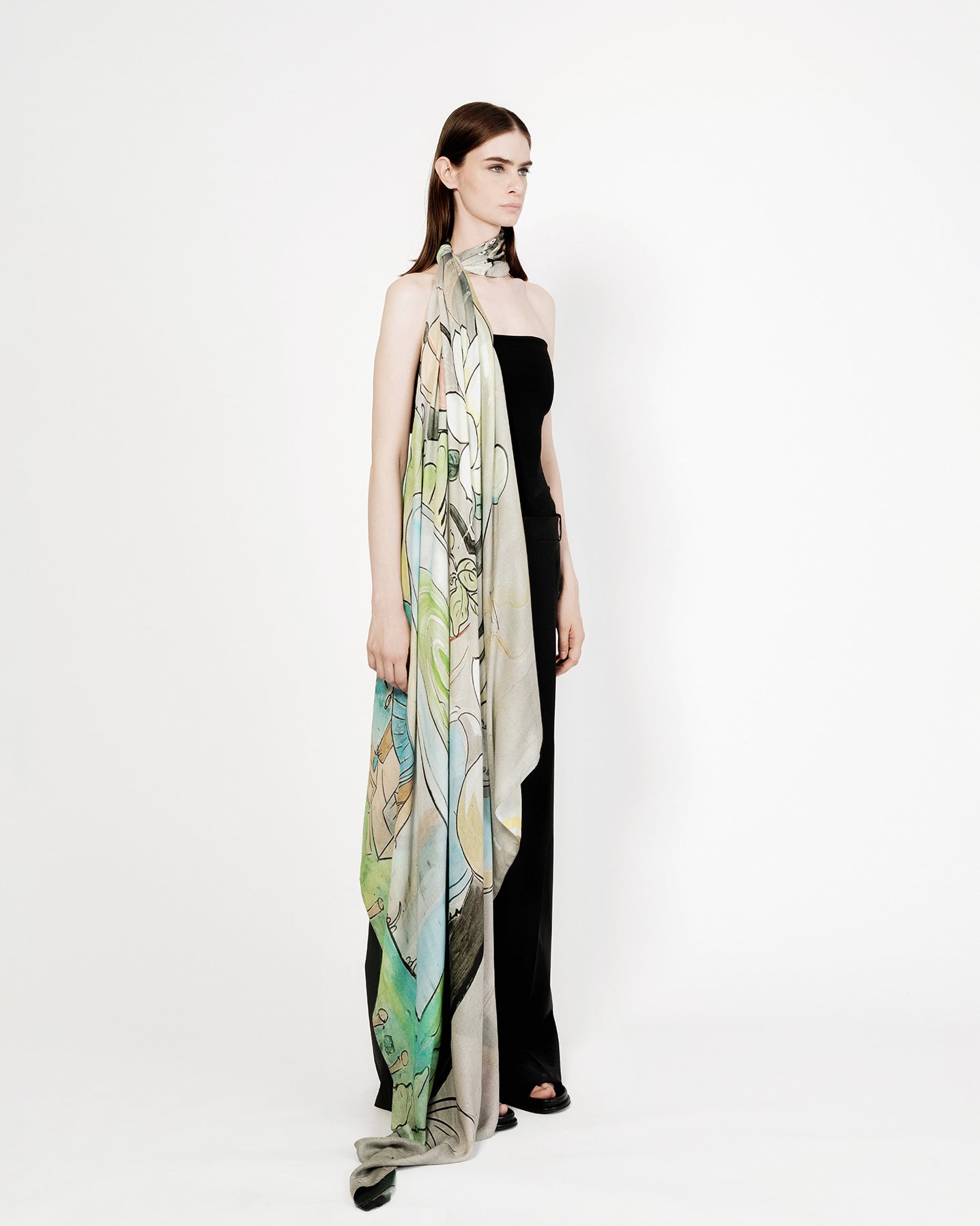 In a quiet fold of Tianzifang, somehow still untouched by a million tourist eyes, this wall practices a soft kind of magic. A steaming tea pool forms the heart of the scene, lotus petals drifting on its surface. The green swirl suggests jasmine, maybe oolong — but mostly it suggests pause. A teacup tips its contents back into the source: a perfect closed loop. Everything returns. Around it, a miniature shan shui world assembles — small bridges, gentle hills, a drifting child suspended in dream logic. And in the corner, a little cat watches, grounding the dream in the quiet reality of the street.